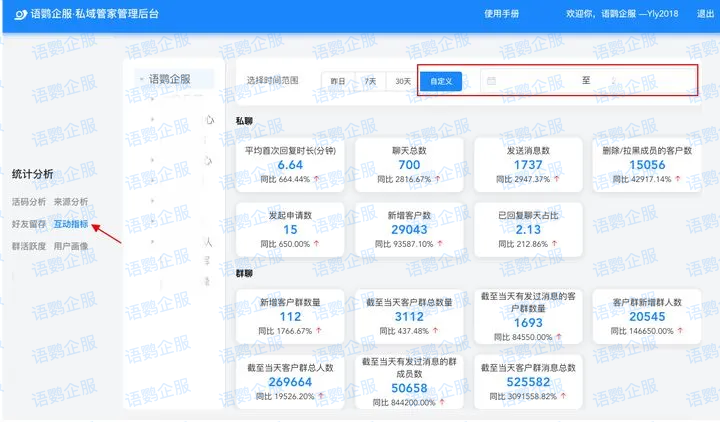 语鹦企服将会话存档与数据报表中心打通,管理者不仅能查看单条对话,还能通过互动指标统计每个员工的客户新增数、流失数、响应时长等数据。某连锁教培机构发现某位顾问客户删除率异常偏高,通过调取会话记录发现其话术过于强硬,针对性培训后客户留存率提升了40%。这种基于数据的精准管理,远比笼统的培训来得有效。