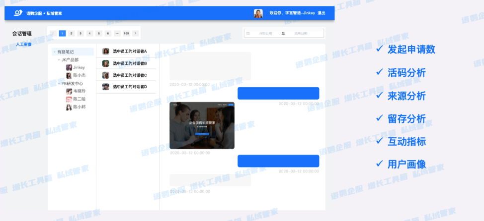 此外,保障客户资产安全同样重要,鉴于销售人员流动性大及私单风险,机构可通过部署语鹦企服的会话存档功能,实现沟通内容合规留存。管理层既可回溯记录优化话术,又能通过敏感词预警及时发现违规行为,这不仅保护了客资不随离职流失,更为医疗服务合规性构筑了数字化防火墙,让流量真正沉淀为安全资产。