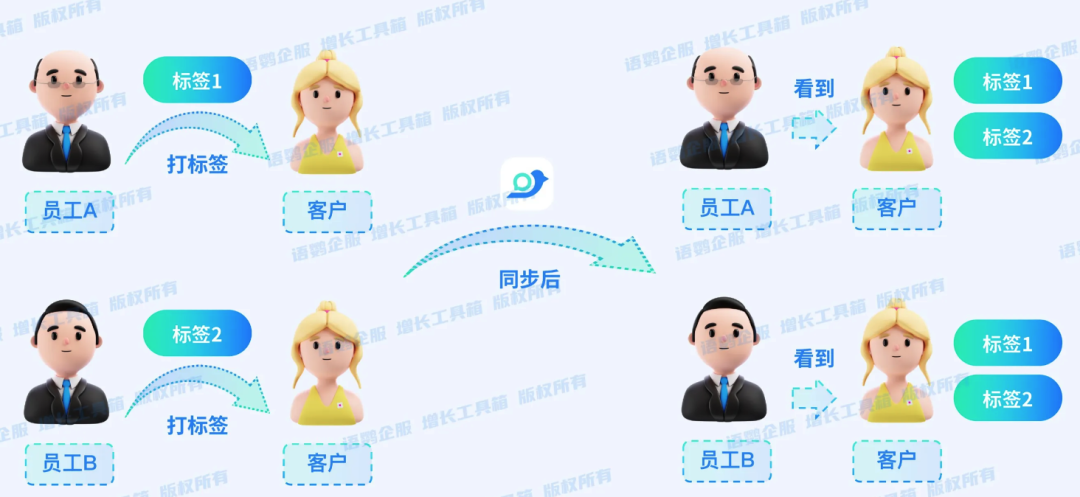 以上就是关于《企微员工标签同步如何优化客户管理效率?信息实时共享怎样消除信息孤岛?》的相关内容了。通过打破标签壁垒,企业不仅能提升协作效率,更能为客户提供无缝衔接的优质体验。更多企业微信私域玩法,欢迎关注语鹦企服私域管家。