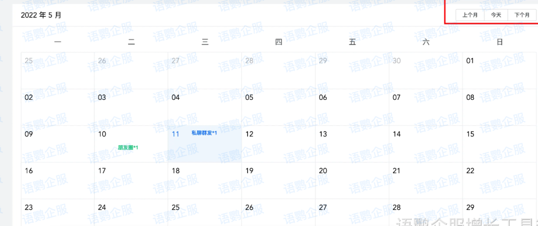 在面对新品上市或大促等需要调动千百个社群联动的场景时,单纯依赖人工转发极易出错且效率低下。企业管理员虽然可用企微后台操作,但借助语鹦企服的「定时群发」与「营销日历」功能可以实现更长远的策略部署 。运营人员只需在后台提前规划好未来一周甚至一个月的宣发内容,就能一站式解决多群触达问题。