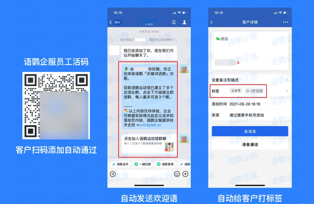 告别低效的人工手动标记,关键在于建立“行为即标签”的自动化机制。最直接的切入点是在获客源头部署语鹦企服的员工活码 。企业可为公众号、门店物料、包裹卡等不同渠道设置专属活码,当客户扫码添加员工时,系统不仅能自动发送差异化的欢迎语,更能后台静默打上“渠道来源”标签 。这种“无感化”的操作,既免去了员工反复询问客户来源的繁琐,又确保了每一位新客在进入私域池的瞬间就具备了初始画像,为后续计算各渠道ROI提供了坚实的数据基础。