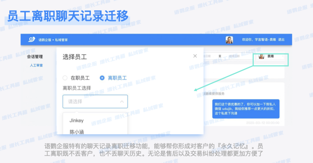 为了让新销售快速进入成交状态,还可以配合语鹦企服的跨平台话术库。针对继承过来的客户,新销售可以一键调用预设的“温馨交接语”,并结合历史记录发送最新的店内促销图文。结合语鹦企服私域管家SCRM系统免费试用的丰富插件,离职继承不再是头疼的善后,而是一次唤醒高意向车主、提升门店产出的绝佳营销机会。