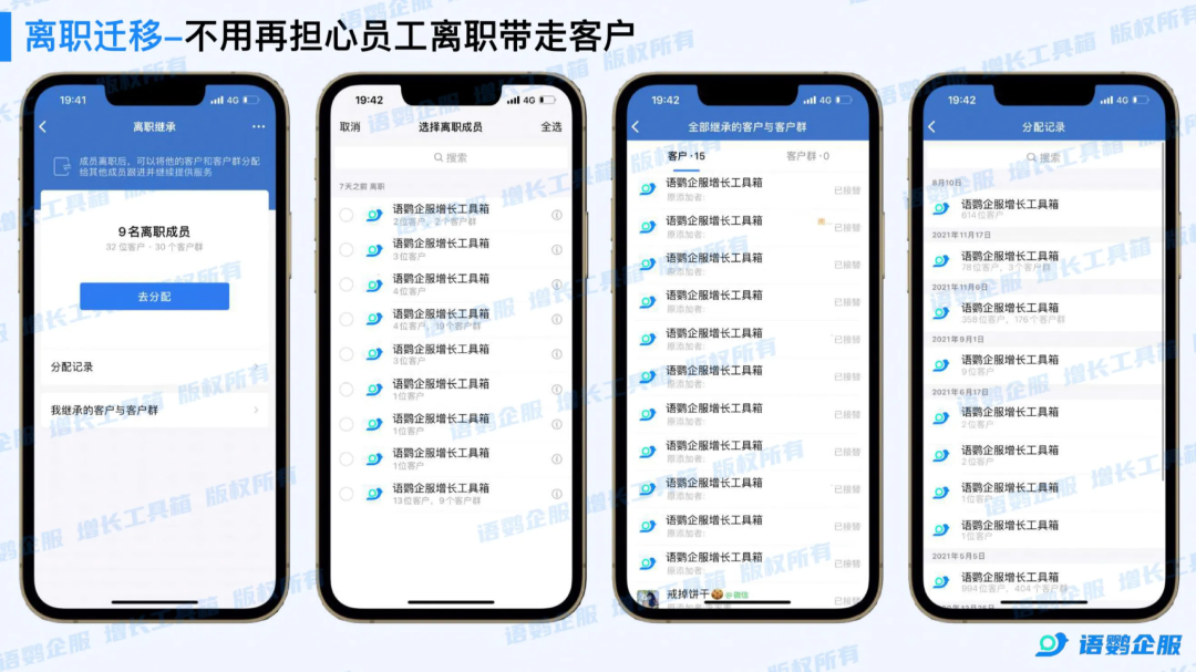 以上就是关于《汽贸行业销售离职带走客户怎么办?企业微信离职继承功能怎么用?》的相关内容了。通过数字化工具将销售沟通资产化,是汽贸行业跨越增长周期的必修课。更多企业微信私域玩法,欢迎关注语鹦企服私域管家。
