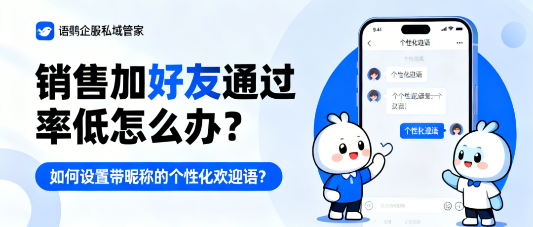 客户联系作为企业微信的重要功能,欢迎语及好友添加机制承载着建立客户第一印象与私域破冰的重要性。在日常引流场景中,一线销售常遇到加好友通过率低、打招呼过于机械化导致客户反感的难题。下面就跟着语鹦企服来看看:销售加好友通过率低怎么办?如何设置带昵称的个性化欢迎语?