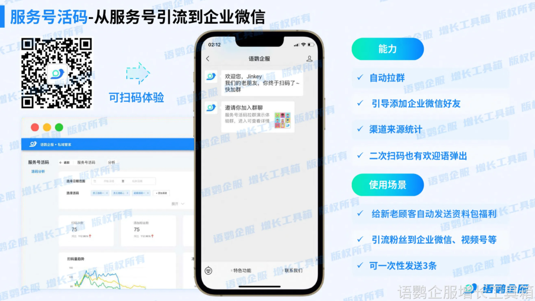以上就是关于《618大促如何通过服务号给老粉发福利?服务号活码引流企微怎么做?》的相关内容了。大促的本质不应只是赔本赚吆喝,而是通过合理的工具将瞬时流量转化为企业的长期资产。更多企业微信私域玩法,欢迎关注语鹦企服私域管家。