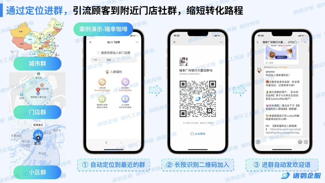随着新消费品牌竞争的日益白热化,茶饮咖啡行业普遍存在公域流量见顶、获客成本攀升等挑战。这些问题导致门店线下客流向线上转化的效率极其低下,成为广大实体店老板所急需解决的核心难题。下面就跟着语鹦企服来看看:瑞幸咖啡私域打法怎么复制?如何实现LBS定位自动进群怎么做?