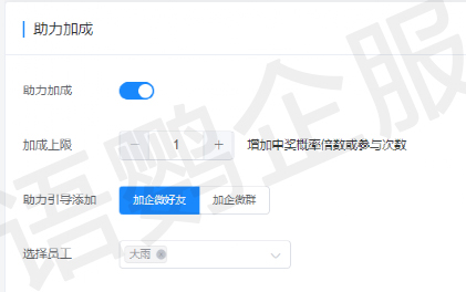 该功能下,还有【助力加成】模式,引导现有的客户通过抽奖海报进行裂变传播,既为原有的客户增加抽奖次数,还能获取新用户,实现双赢局面。