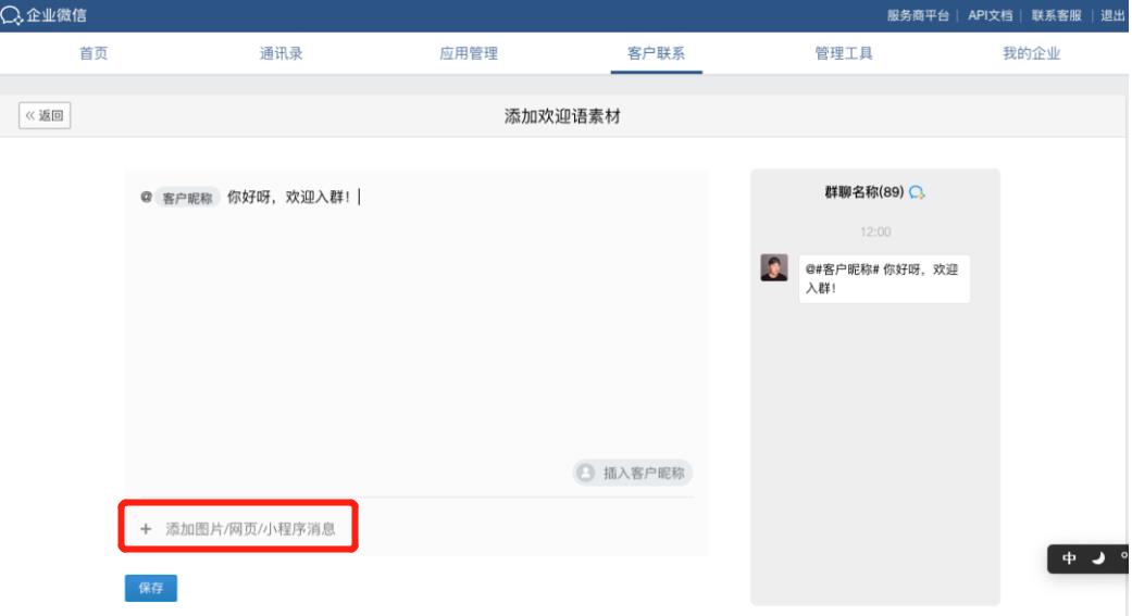 企业微信欢迎语怎么添加小程序?