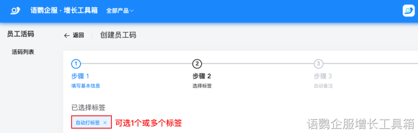 添加完好友后,员工为更好地对不同客户提供精准化运营,会给客户进行标签分类,语鹦企服的【员工活码】功能可以在添加好友时跟不不同的分裂渠道自动给客户打上标签.