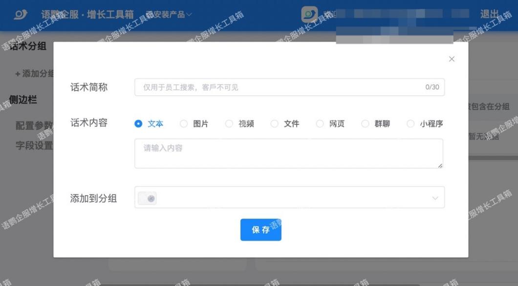 但是企业微信的「快捷回复」功能只能添加文本,目前不支持添加图片、小程序等其他多媒体附件。在这里我们可以体验一下语鹦企服的「话术库」功能,支持各种类型的消息。客户咨询产品如何使用时,我们就可以一键发送提前准备好的话术。在提升企业员工服务水平的同时,也使客户体验感增强。