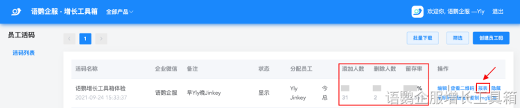 2.如果是需要看到每个渠道的数量的报表或者数据可以在语鹦后台「报表中心」查看活码数据查看每个渠道的数量。
