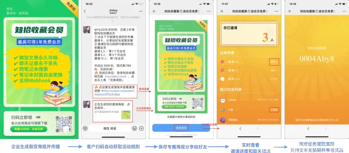通过语鹦企服·增长工具箱中的【好友裂变】工具轻松完成客户引流。企业不仅可以在后台追踪到活动效果,掌握客户的进度和领奖记录,而且客户在完成活动后会接收到企业自动派送的礼品。