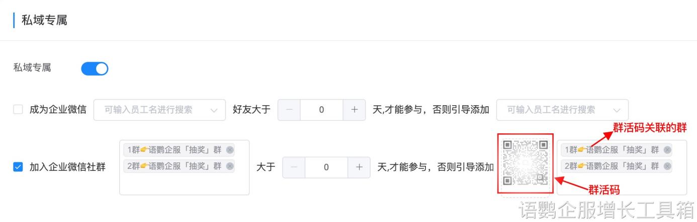 线下门店可以在门店前台加设福利活动二维码,由前台工作人员引导到店顾客扫码领取福利。在客户扫码之后,使用语鹦企服的【仅好友参与】功能,自动引导扫码客户添加企微员工,最终成功参与福利活动。如此一来才能防止客户领取福利之后并没有进入私域,导致流量的流失。