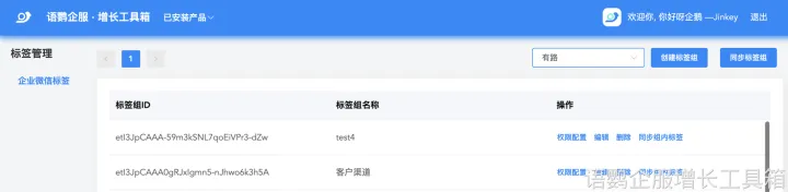 企业也可以选择使用语鹦企服的【标签管理】功能,该功能支持企业在语鹦后台创建标签组,并且不是企业微信管理员也可按标签实施权限控制、灵活编辑标签,使标签配置流程更加方便。