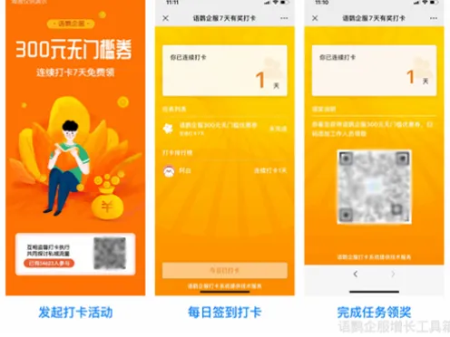 还可利用语鹦企服【群签到打卡】功能,设置好打卡奖励机制,提高群成员到群率,增加社群活跃度。