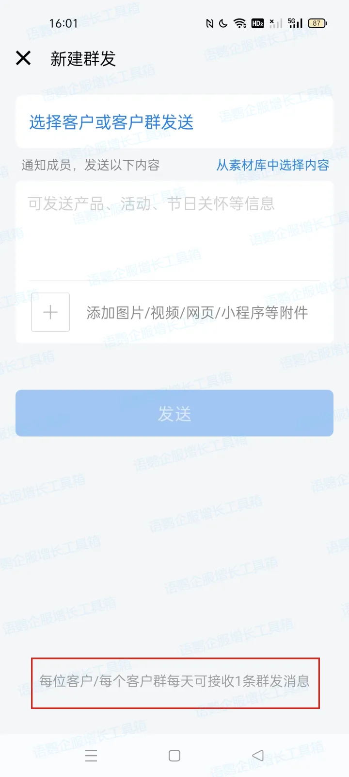 许多企业在使用企业微信进行客户营销的过程中,都会使用群发的这种高效的方式来向客户传达关键信息。那么企业微信群发次数有限制嘛?企业微信群发次数用完了怎么群发?下面语鹦企服将为您解答。