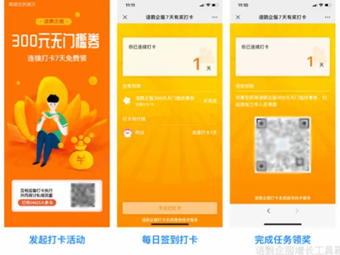 社群活动除了可以做常规的社群专属福利、秒杀活动,还可以使用语鹦企服【群签到打卡】功能、【大转盘&九宫格抽奖】功能,让活动变得更有趣更刺激,群成员的互动率也会更高,同时提升用户粘性,让用户更愿意留在企业的社群里。