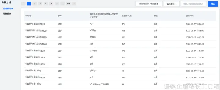 结合【进退群留存】功能,查看群聊一段时间内的加群人数、退群人数、群人数走势,对比不同社群的运营效果,通过数据指标的变化分析社群的优化方向。只有不断调整社群运营方案,才能找到最适合品牌调性和目标人群的运营方式。