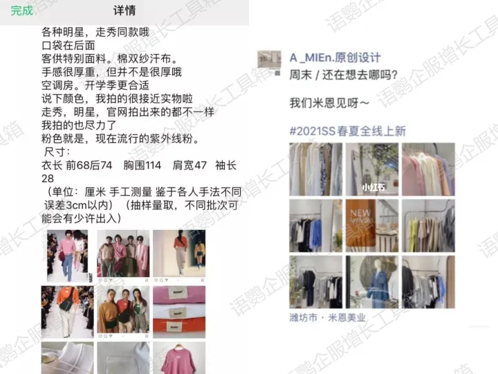 以上就是《服装店怎么做私域销售?私域运营好用的工具有哪些?》的相关解答了,总的来说实体服装店可同时采用两种销售模式:一是门店引流线上,线上引导客户到门店消费;二是与社群配合引流,通过私域直播进行线上销售。更多企业微信玩法,关注语鹦企服私域管家。