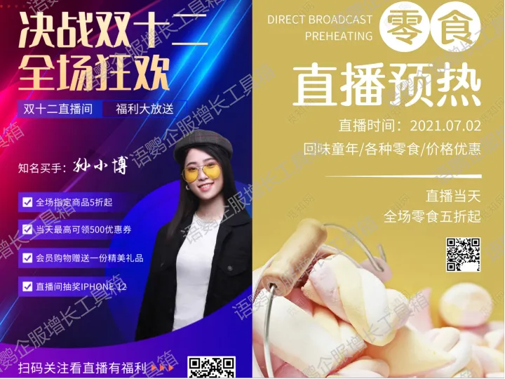 直播预热期间,可制作预热海报,公布直播间的活动(秒杀、福利、红包等),将海报发送到各个社群和朋友圈,设置“转发海报抽奖”等福利,引导用户转发,吸引更多的人来到直播间,人越多转化的几率就越高。