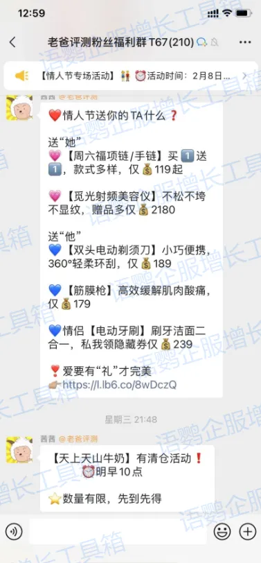 高活性的社群也是达成高成交率的关键,这就需要企业成员在社群内进行持续的内容推送,例如:定时播报、实时推送优惠信息等,并且要每天定时多次地频繁发布产品的优惠信息,丁香家粉丝群就采用了这种持续推送的方法。这样不仅能增加活动的曝光度,也能很好的留住客户,碰上当客户有需求时就能抓准时机即使达成转化。