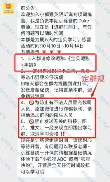 为了防止群成员在群内随意发送广告等信息,群主要设置清楚的群规,规定发广告者将被移出群聊,提示群成员注意社群发言。