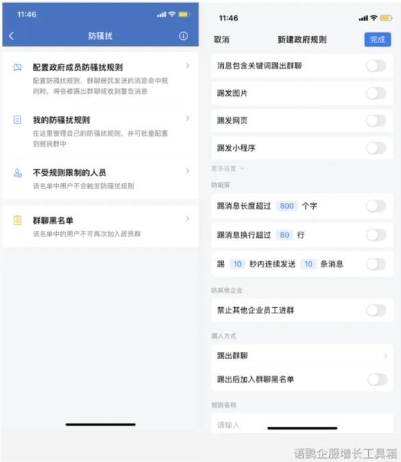 群规则可以配置在群公告和入群欢迎语,以提醒全体成员以及新入群的成员,使用语鹦企服的自动化【入群欢迎语】可以在每个新客户入群时及时地告知群规则。