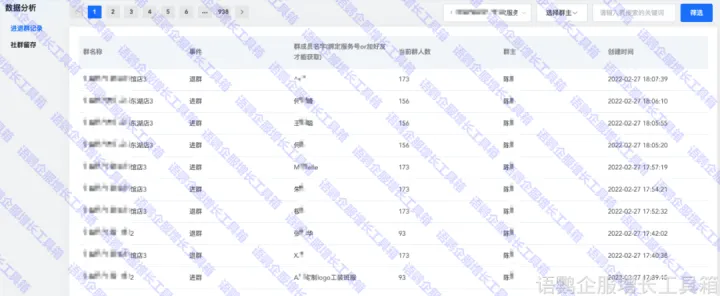 同时,语鹦企服增长工具箱中还有多个数据面板,能够记录每天进退群的情况,生成可视化图表,给予企业最直观的反馈。