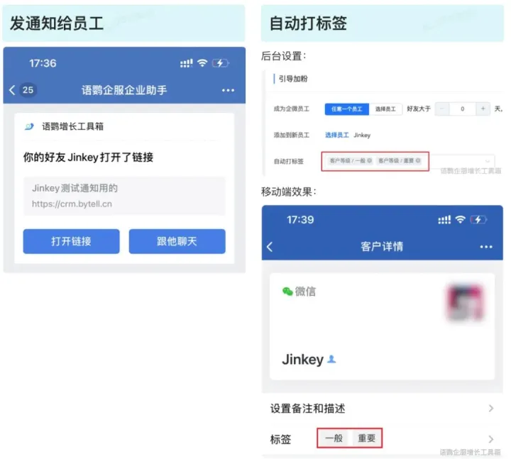 只有不断地复盘才能向上迭代,让客户满意,增加粘性。语鹦企服增长工具箱中的【轨迹素材】和【社群链接跟踪】都可以帮助企业去复盘当天客户还有社群成员对发布社群的内容的感兴趣程度,并对员工发起提醒通知方便员工跟进客户,同时也可以通过点击情况判断发布内容还好及时进行调整。