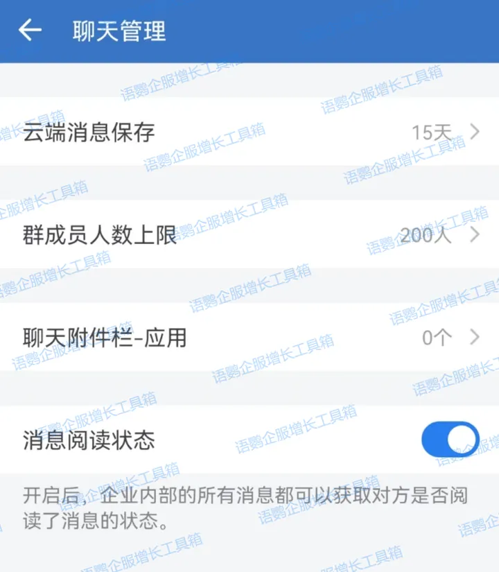 为了保护隐私,企业微信是不能查看外部微信用户是否查看消息的,只能查看内部人员是否已读。可以在企业微信手机端选择「工作台」-「企业管理」-「聊天管理」-「消息阅读状态」中开启,然后就能看到内部群中群消息的已读成员和已读人数了。