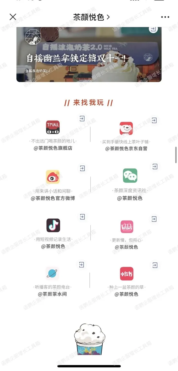 建立多种内容分发渠道,包括社交媒体、电子邮件、短信等,扩大内容曝光度和影响力。比如很多品牌的官方公众号下方都会有其他App的关注方式。