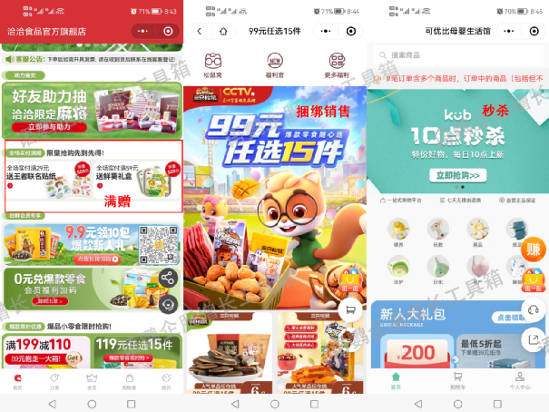 私域电商其实就是电商的私域形式,因此,传统电商的营销玩法都是通用的。例如打折、秒杀、满赠、满减、买送/捆绑销售等都是常见的营销手段。与传统电商不同的是,品牌能够通过朋友圈/私聊/社群/视频号直播等私域阵地及时向用户传达活动信息,直接分享购买链接引导下单。