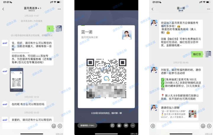 企业可以通过视频号小店客户引导到用户添加企业,如通过视频号小店的客服入口自动回复关注企微客服提供服务来引导用户到企微私域,比如洗护品牌蓝月亮,就是通过从小程序的客服聊天窗口自动引导加私域,并通过抽百元红包为福利钩子提升私域转化率。