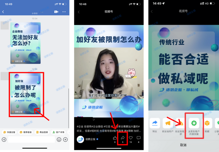 视频号的出现因其好友推荐的机制及微信平台5亿+日货用户的背景,越来越多商家选择入住视频号进行品牌营销,丰富品牌在微信平台的内容生态,那视频号能打通企业微信做内容互通么?企业微信如何群发视频号?视频号视频怎么群发到企微客户朋友圈呢?下面语鹦企服来带大家一同揭晓。