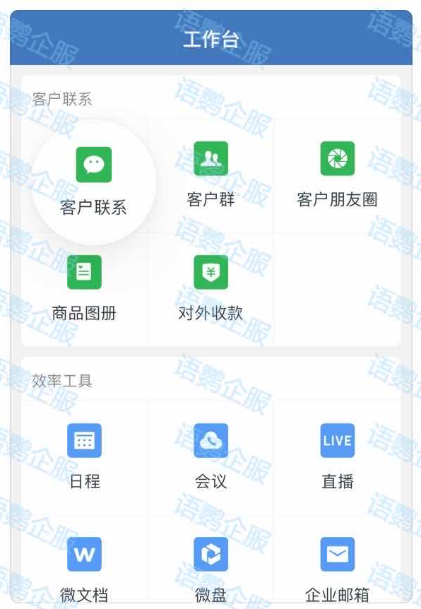一、先点开企业微信系统的「工作台」,进入「客户联系」