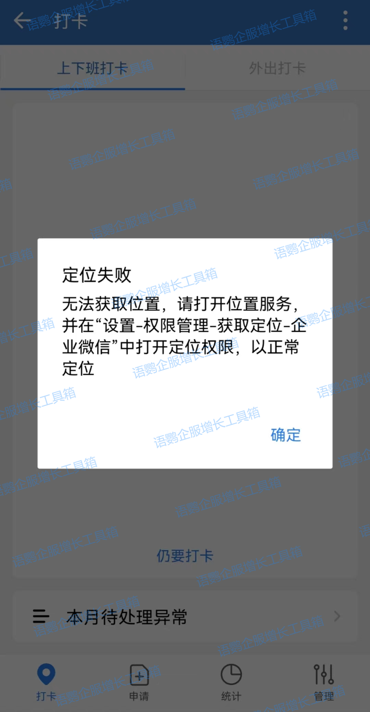 企业微信获取位置失败可能是手机设置中没有允许企业微信访问位置信息,或者定位功能没有开启。需要在系统设置中打开企业微信的定位权限,并设置始终允许,同时开启定位功能。也有可能是企业微信后台设置的打卡规则或打卡地点有误,导致地理位置不在打卡范围内。需要联系企管理员确认规则名称是否正确,或者修改打卡地点、扩大打卡范围、开启Wi-Fi打卡等方式解决。最后也可以确认一下连接的Wi-Fi名称或BSSID是否正确,更换到指定的Wi-Fi。