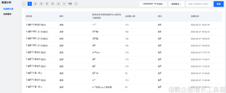 针对不同渠道来源及不同标签维度的客户进行定期评估和效果优化。企业可通过语鹦企服的数据报表中心和进退群分析等功能对渠道的数据监测和分析,判断不同类别的社群的进退群情况,诊断和优化不同社群群聊的内容方向策略。