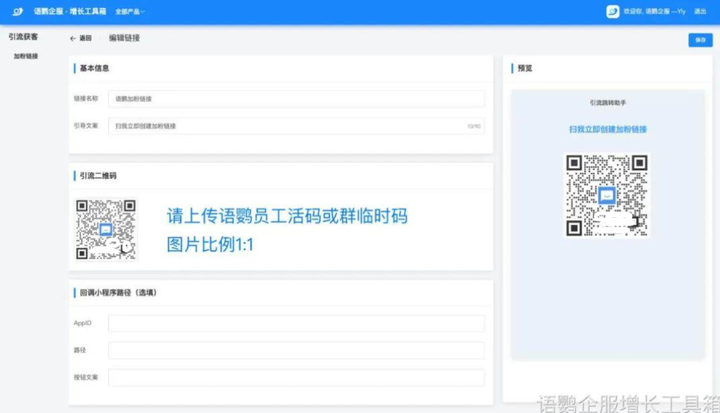要想在视频号评论区中放置链接,可以用到语鹦企服的「加粉链接」功能,自主编辑链接名称和引导文案,客户点击链接即可添加好友或者进入社群。