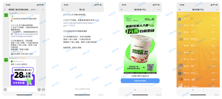 通过提供优质的产品和服务让用户自愿成为品牌的口碑传播者,借用一些小的福利吸引加上人传人的力量快速吸引用户进来企业等私域,并通过后续的服务逐步让新加入的成员也成为品牌的忠实客户。比如茶饮品牌薄荷森林就是通过语鹦企服的社群裂变功能,将新款饮品1元购作为福利钩子,激发了社群的用户主动邀请好友来一起品尝,既收获了用户也给新产品做了宣传。