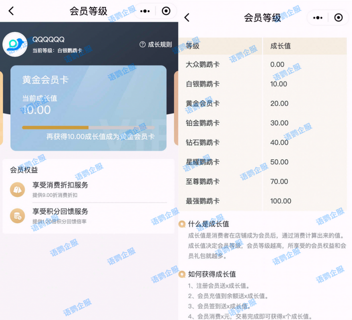 订阅用户:企业推出自己的小程序或者APP,用户通过注册会员之后绑定了自身信息或者通过下载和使用应用程序与企业建立联系。企业可以通过应用程序与用户进行互动和提供个性化服务,比如可以通过语鹦企服微商城来实现不同的消费等级提升会员权益,来吸引用户加入会员。