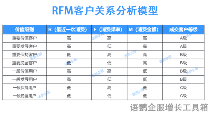 层次等级是私域会员成长体系基本前提,会员分级能够帮助品牌筛选出对不同价值的用户,并对其精细化运营。品牌可基于RFM模型对用户进行分类,明确当前的用户画像,再根据重要程度,结合“二八定律”划分会员门槛。