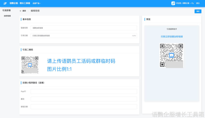 如果企业有短信营销的需求,通常是直接把微信号放在短信里,让客户复制微信号,再打开微信的「添加好友」粘贴,进行添加,这整个操作流程很麻烦,转化效果会很不理想。企业可以借助语鹦企服的「加粉链接」功能,创建加粉链接,通过短信文字引导客户点击链接,直接识别二维码加企业微信,减少客户操作流程,提升加粉转化效果。