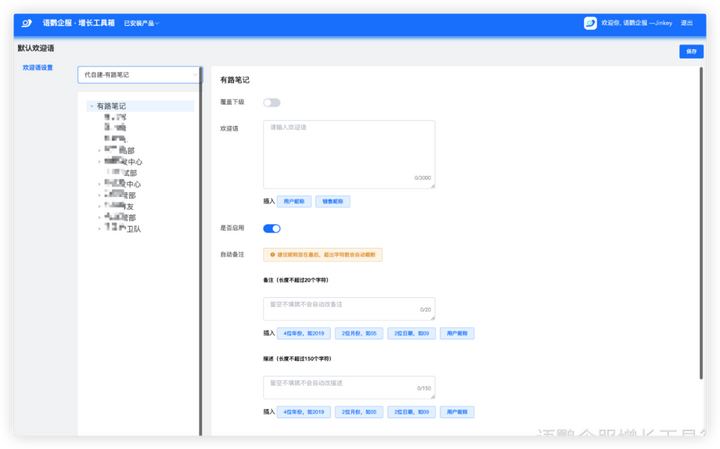 可借助语鹦企服的「个性化欢迎语」功能,实现单独的欢迎语,还可动态带上客户昵称、销售昵称,给客户更真实更贴心的服务。