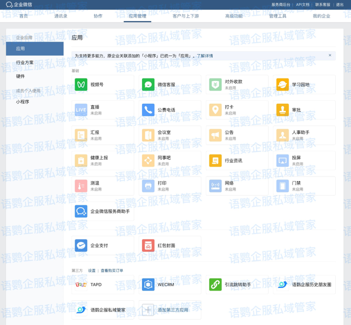 使用企业微信应用:可以让员工作为内部OA工具,如打卡、审批、日报等,从而增加企业微信活跃度,提高账号权重。