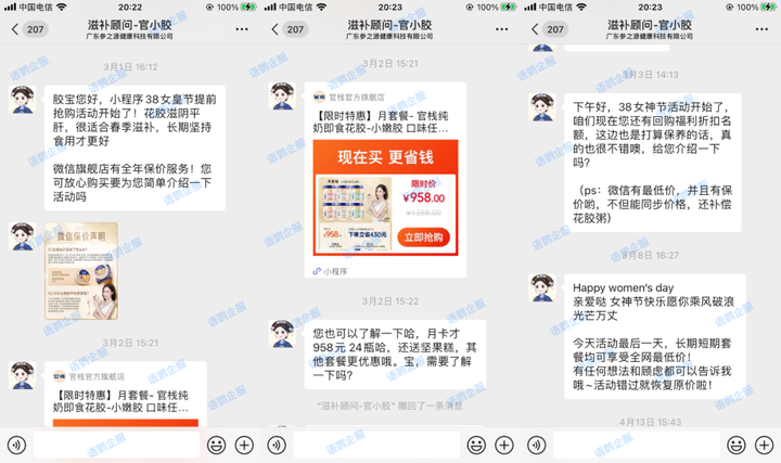 想要给客户发送活动优惠消息,可以在在活动的第一天向客户介绍相关活动力度和活动价格,之后发送商品购买链接刺激客户下单;第二天重复强调优惠政策并发送下单链接;随后每天发送对老客户的问候语,在活动结束的最后一天,提醒客户错过活动就恢复原价了。