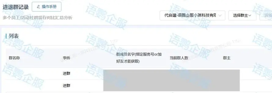 语鹦企服的「进群活码」功能支持无上限创建新群聊,且不受人数限制。除此之外,语鹦企服【进退群分析】功能还支持查看每日的进/退群人数,可以帮助企业监测群成员的动态变化和情况,了解用户参与和留存情况,从而优化群管理和营销策略。
