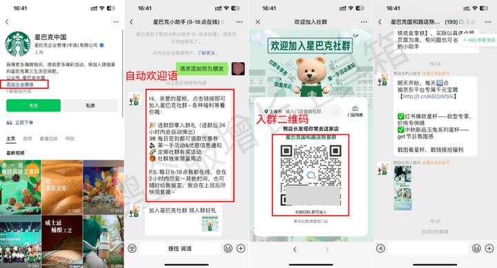 视频号小店为内容创作者和个人商家提供了将积累私域流量的机会,通过策划短视频内容吸引用户观看,并借助语鹦企服的「个性欢迎语」功能,将一键「添加好友」放于视频号首页banner位置,用户点击后会直接加上企业微信并进入社群当中。