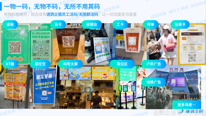大多门店都会借助语鹦企服的「员工活码」功能,代替一般的企业微信二维码。因为语鹦企服的「员工活码」功能突破加好友上限,开启扫码自动分流到各个员工企业微信,还可免验证,扫码即可加好友,并能自动推送欢迎语,打上渠道标签,便于门店后续精细化管理。