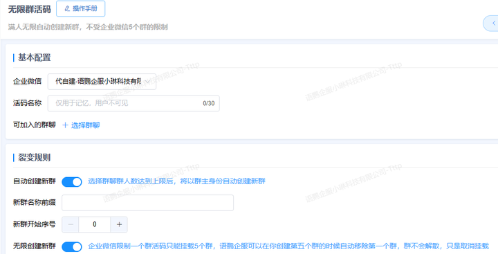 为了解决这个问题,企业可以借助第三方工具箱——语鹦企服的「进群活码」功能,支持群活码永久有效,还能同时解决企业微信仅支持绑定5个群聊的限制,实现无上限创建新群聊。