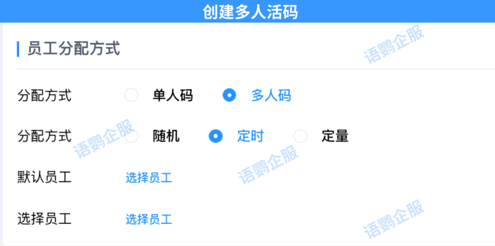 为了避免添加好友上限的问题,可以使用语鹦企服的「员工活码」多人码功能。语鹦企服系统会自动根据不同账号好友的添加情况为客户分配不同的员工,避免单个账号添加上限的问题。